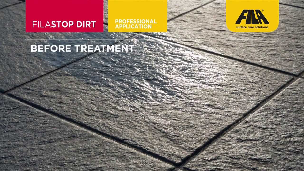 Applicazione dopo posa su superficie nuova: 1. Lavare bene il pavimento con DETERDEK PRO (fughe cementizie) o CR10 (fughe epossidiche). 2. A pavimento asciutto e pulito applicare STOP DIRT in modo uniforme sul materiale e sulle fughe con vello o altro opportuno applicatore. Consiglio dell’esperto: Data l’elevata resa del prodotto, applicare una moderata quantità di prodotto utile al trattamento di 2-3 mq di superfice per volta. 3. Massaggiare la superficie con panno o monospazzola con disco bianco. 4. Entro 10 minuti rimuovere completamente il residuo di prodotto manualmente, o con monospazzola, utilizzando il panno in microfibra.