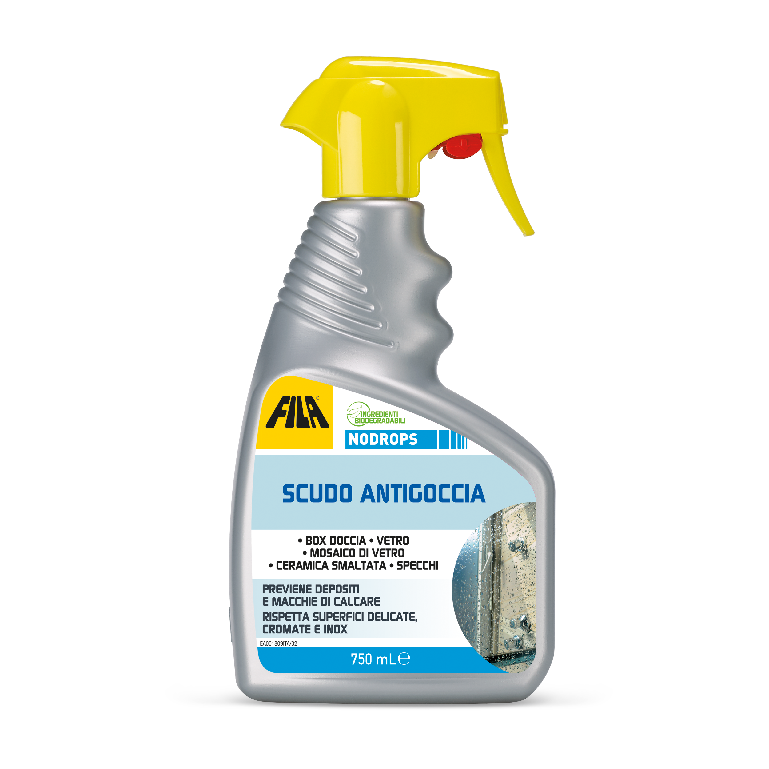 Spruzzare NODROPS sulla superficie tenendo il flacone in posizione verticale a circa 20-30 cm dal punto di applicazione. Passare con carta assorbente o panno morbido e asciutto per distribuire il prodotto in modo uniforme. Lasciare asciugare. La doccia può essere utilizzata immediatamente.Per ottenere un risultato ottimale si consiglia di effettuare la manutenzione con NODROPS con continuità.Nel caso la superficie da trattare presenti evidenti tracce di calcare prima di applicare NODROPS si consiglia di intervenire con l’apposito detergente DEEPCLEAN.