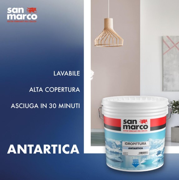 🎨 ANTARTICA – Pittura lavabile a base acqua per interni, inodore e permeabile al vapore acqueo; facile da applicare e ad alto potere antischizzo, asciuga rapidamente: asciutta al tatto in 30 minuti.