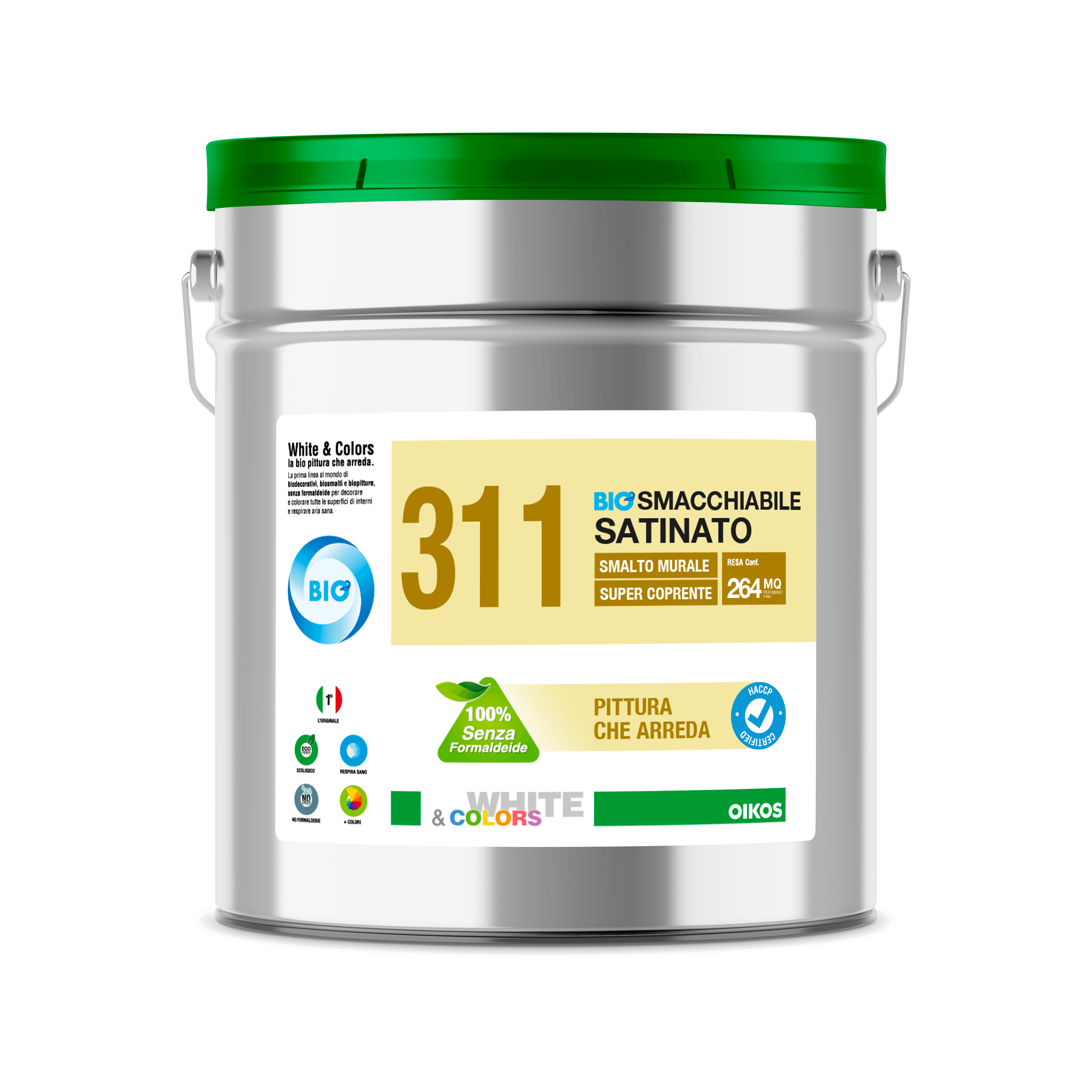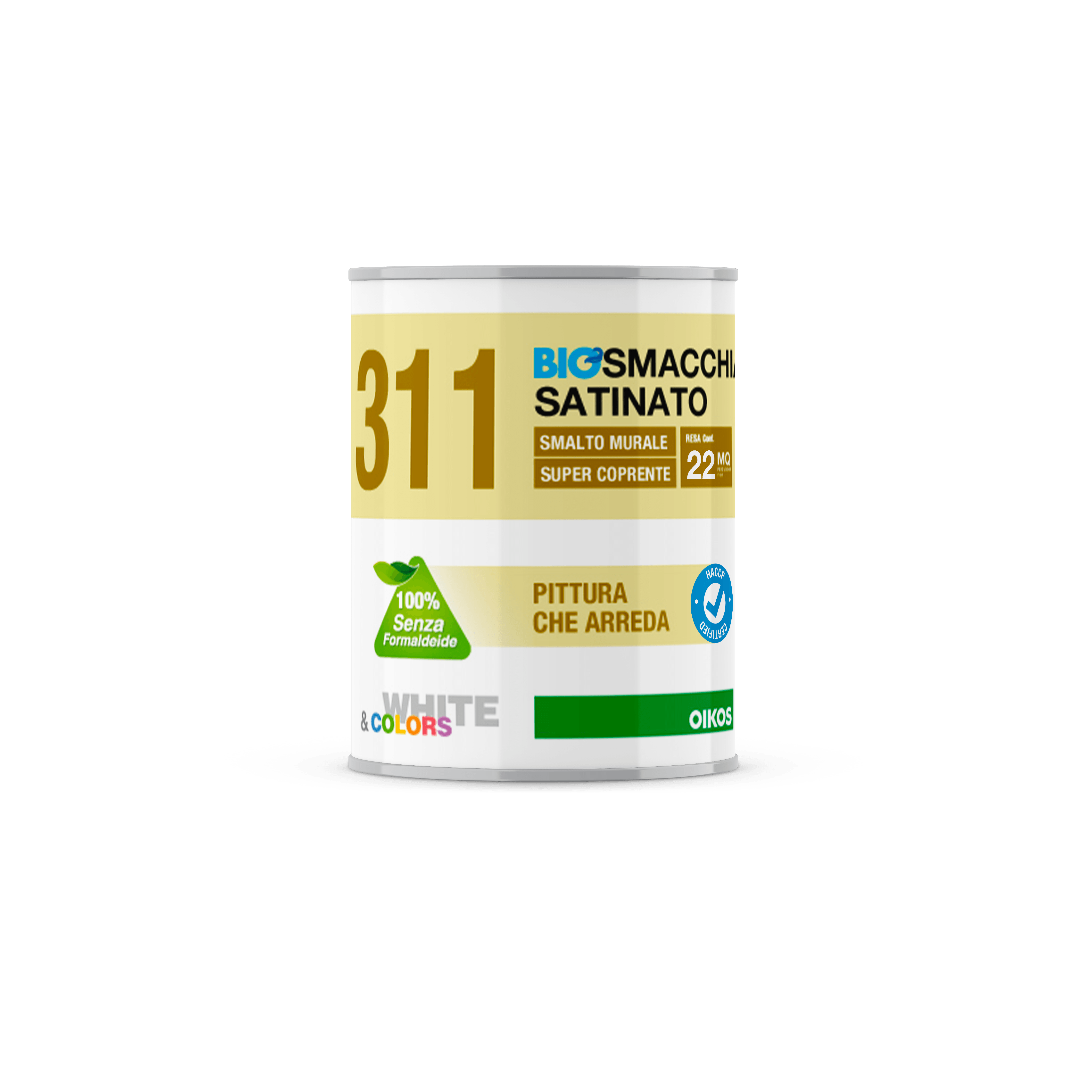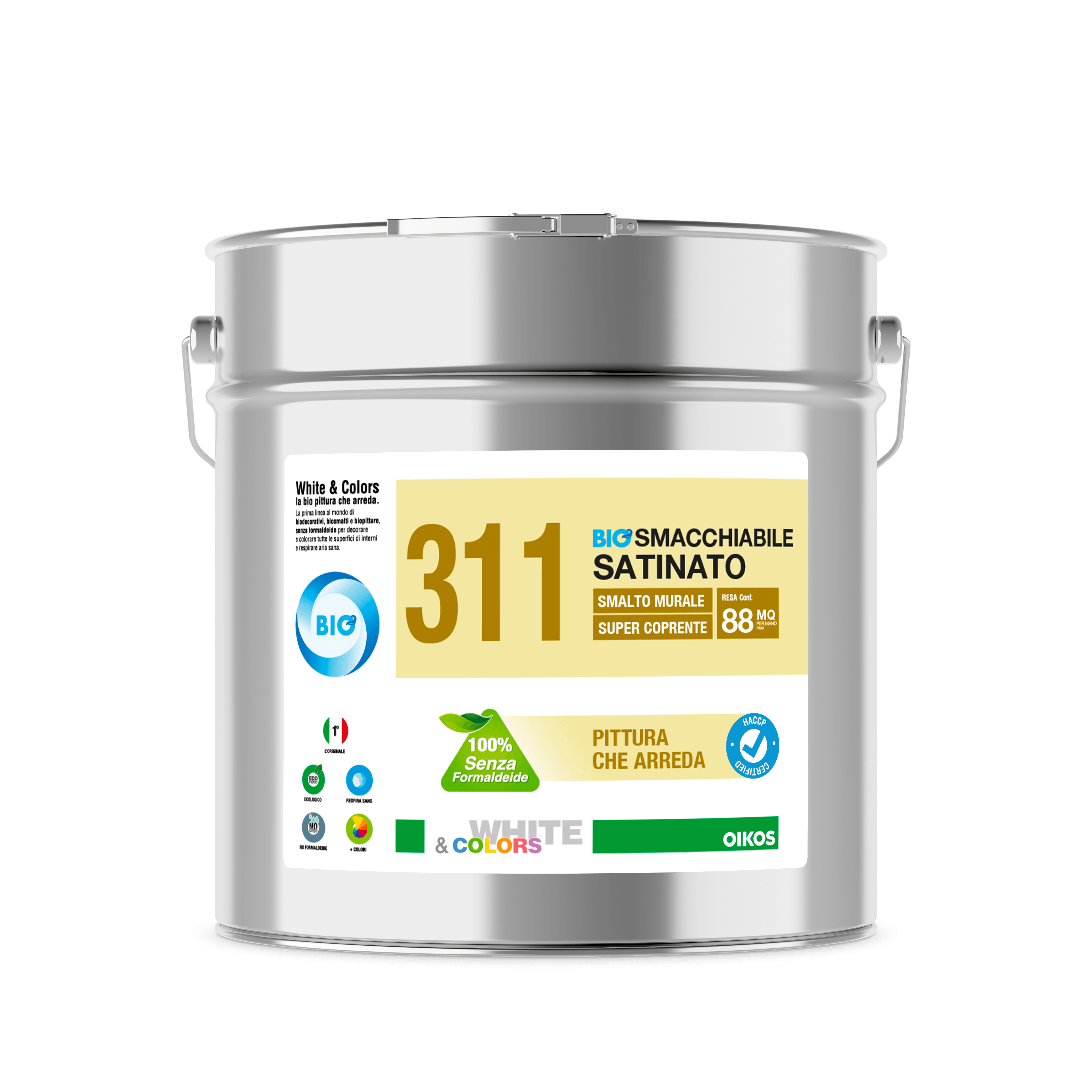 311 Bio Smacchiabile satinato è la miglior pittura per interni per rapporto qualità/prezzo: ad eccellenti prestazioni tecniche, questo smalto murale unisce elevata resa per latta, abbattendo il costo per mq. Prodotto senza formaldeide e certificato in classe di emissione “A+” (Decreto della Gazzetta Ufficiale Francese del 19 aprile 2011).