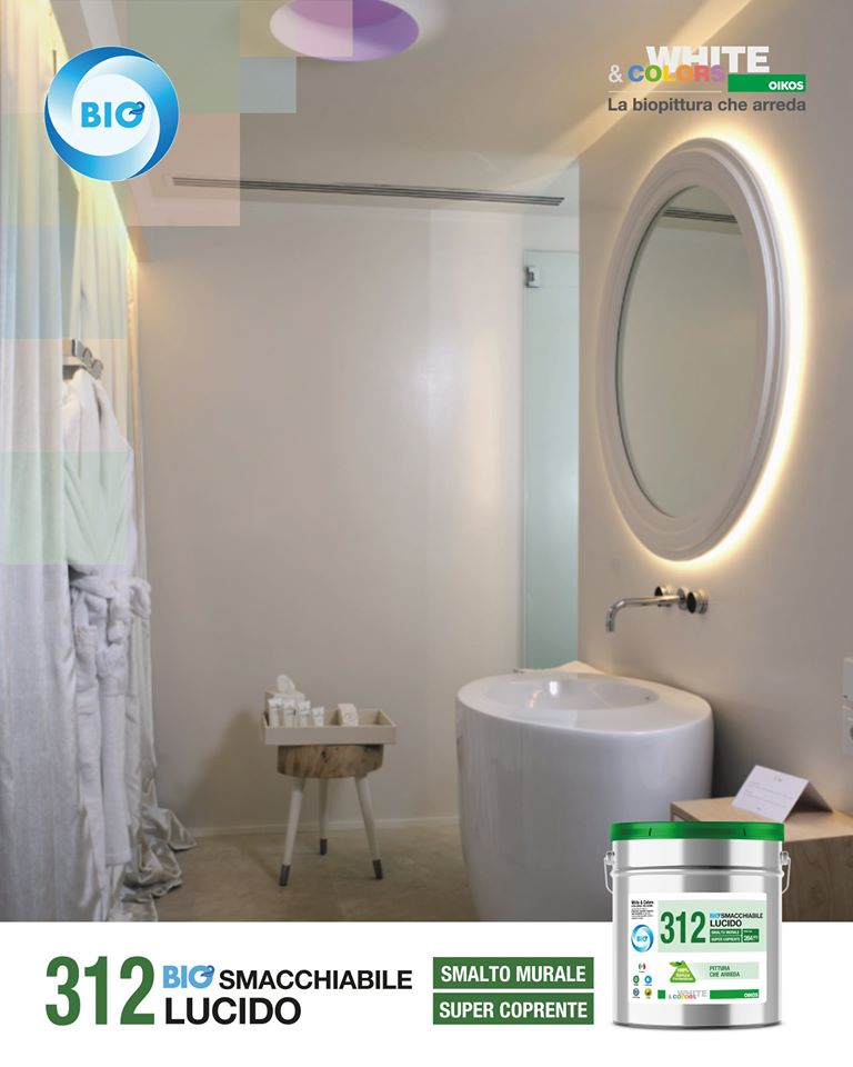 312 Bio Smacchiabile lucido è una pittura certificata sottoposta a tutte le prove indicate dalla norma UNI 11021:2002 “Prodotti e sistemi per la verniciatura di ambienti con presenza di alimenti”; adatta quindi agli ambienti nei quali è indispensabile pulizia e disinfezione, come ambienti pubblici, ospedali, ambulatori, scuole, ma anche ristoranti, alberghi oppure ambienti della casa di frequente traffico, come corridoi, scale, ingressi e cucine, più soggetti di altri a sporco e usura.