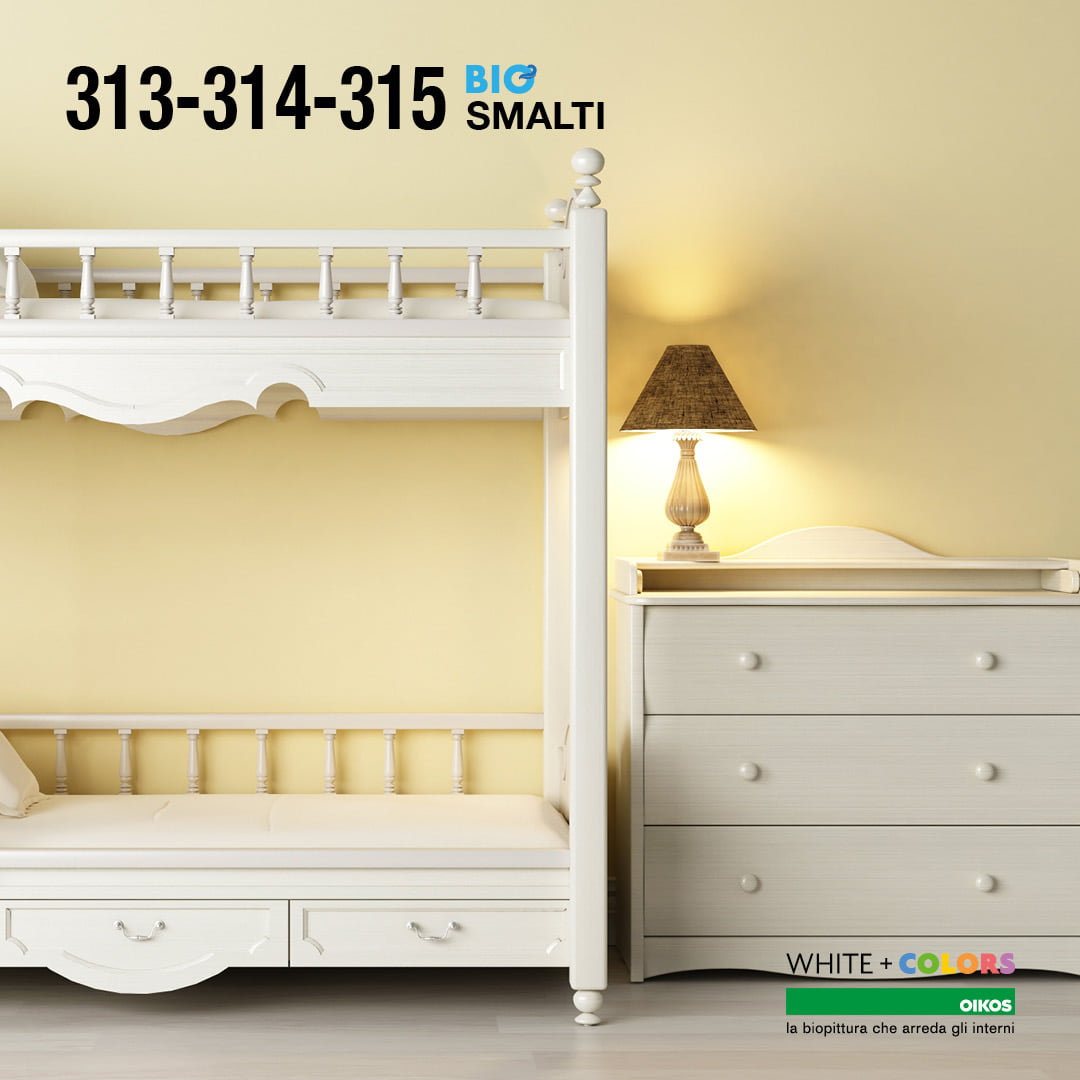 313 Biosmalto opaco è uno smalto ecologico: la sua speciale formulazione, senza formaldeide e senza solventi, non richiede negli interni particolare areazione.