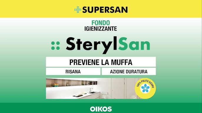 SterylSan è un fondo risanante e sanitizzante, un prodotto igienizzante che nasce per trattare pareti murali interne ed esterne contaminate da muffe ed alghe. Si tratta di un preparato a base di sostanze attive ad ampio spettro, che garantisce un'azione efficace nei confronti di tutti i microrganismi.