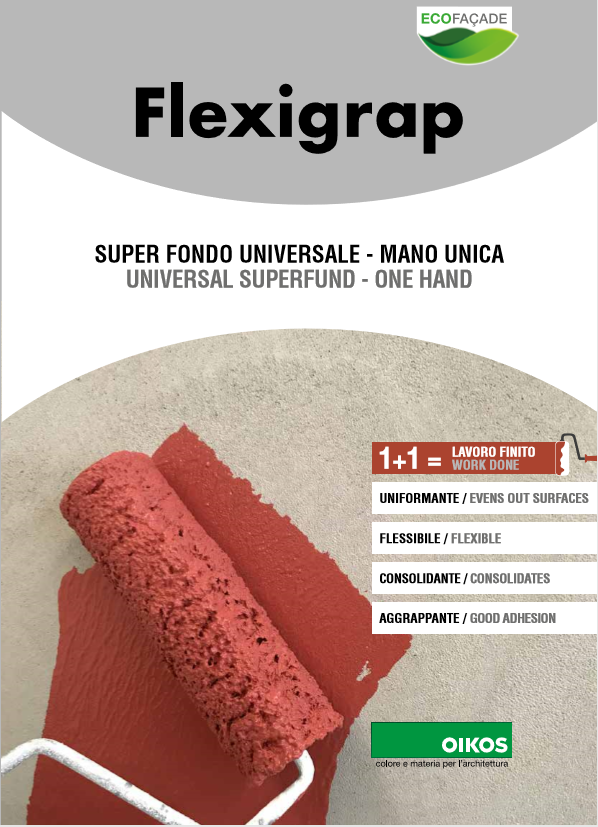 Applicare con pennello, rullo o spruzzo (ugello 1,3 ÷ 1,7) una mano di FLEXIGRAP LISCIO dopo 6 ore circa è possibile applicare i prodotti di finitura