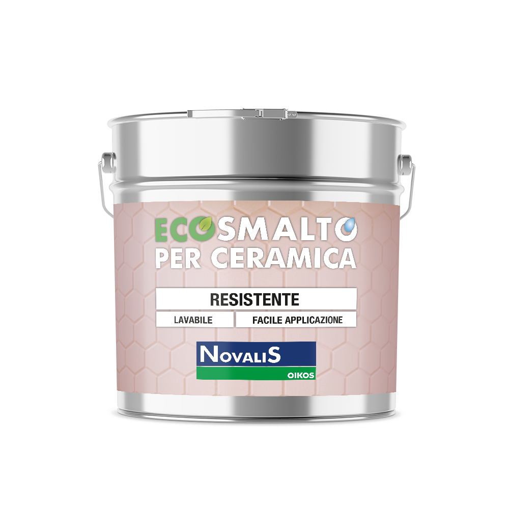 Modalità di applicazione. Applicare due mani di Ecosmalto per Ceramica pronto all’uso a distanza di 6 ÷ 8 ore l’una dall’altra, con pennello per smalti acrilici o rullo per smalti. Su superfici verticali si raccomanda di non eccedere con la quantità di materiale applicato per evitare colature specialmente all’interno delle fughe. Attenzione: il prodotto raggiunge la sua massima resistenza dopo 8 gg dall’applicazione. Il lavaggio va effettuato attendendo almeno 7 gg e utilizzando detergenti e panni non eccessivamente aggressivi. Non idoneo a superfici con ristagno d’acqua o forte traffico.