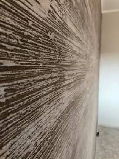 Effetto Cassero: Rasare la parete senza lasciare eccessive imperfezioni con TRAVERTINO ROMANO. Dopo l’essiccazione creare una fascia larga 10-13 cm con nastro adesivo. Applicare TRAVERTINO ROMANO con la spatola lungo tutta la fascia, immediatamente ripassare con Attrezzo Legnato (art. 109) per creare le venature. Appena il prodotto inizia ad essiccare, lisciare con il piatto della spatola. Dopo l’essiccazione rimuovere il nastro adesivo e procedere con la fascia successiva. La lavorazione può essere effettuata contemporaneamente su più fasce al ternate. Per ottenere un effetto più compatto si consiglia di addensare TRAVERTINO ROMANO con O-Addensante (1 flacone da 50 ml di O-Addensante su 20Kg di prodotto