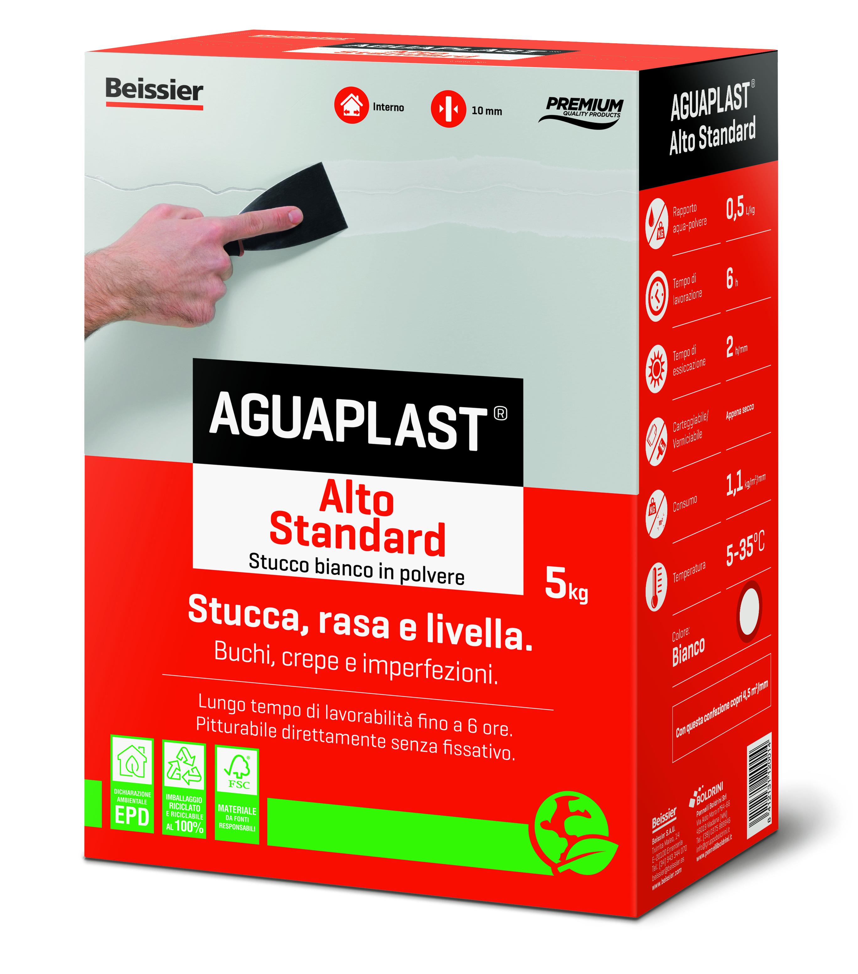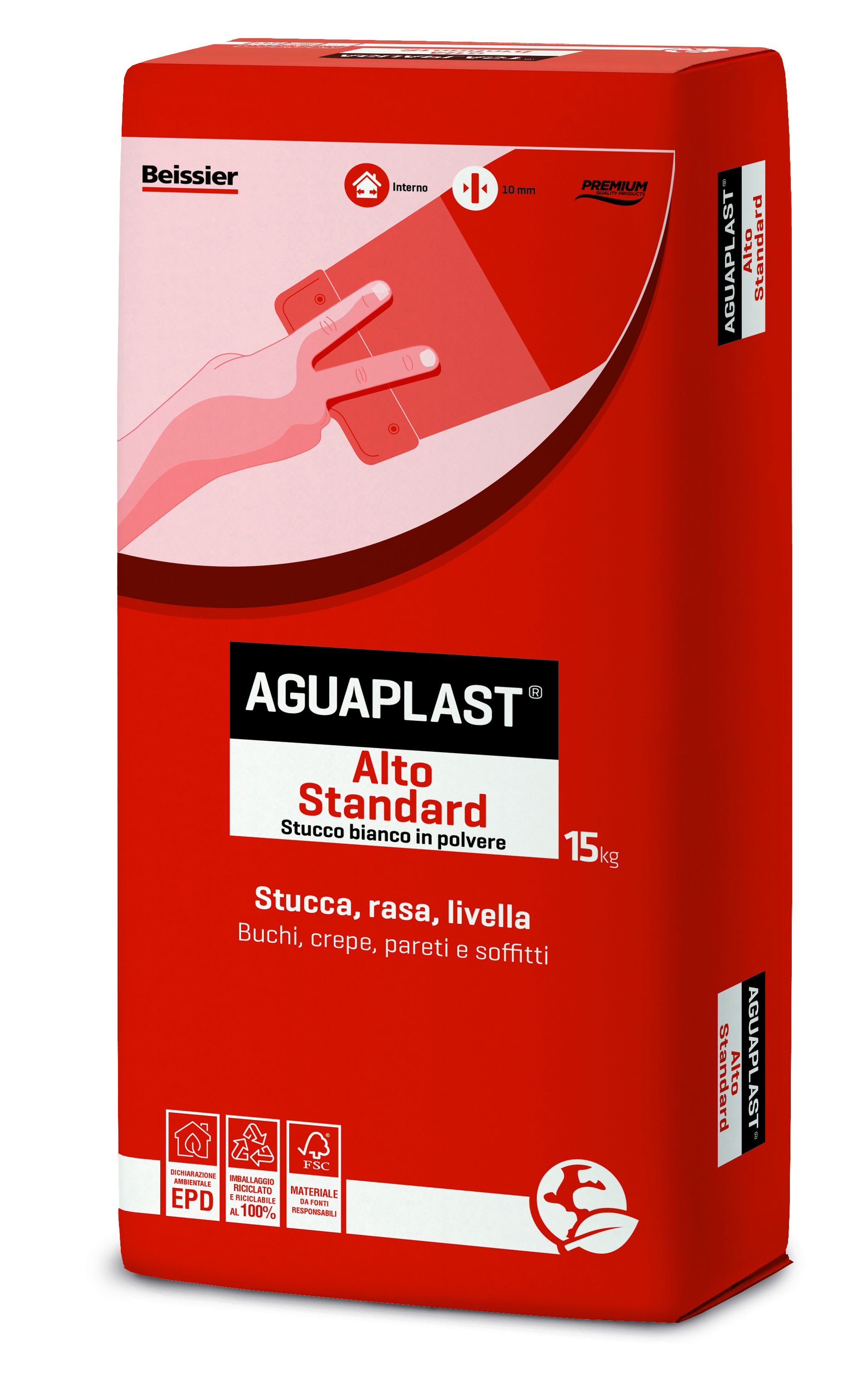 Aguaplast Alto Standard Polvere è lo stucco ideale per rasature e stuccature interne, pensato per offrire una finitura eccellente e una lavorabilità prolungata. Grazie al suo tempo aperto fino a 6 ore, consente di lavorare con calma e precisione, riducendo gli sprechi. Non necessita di fissativo prima della pittura, permettendo di risparmiare tempo e materiali.