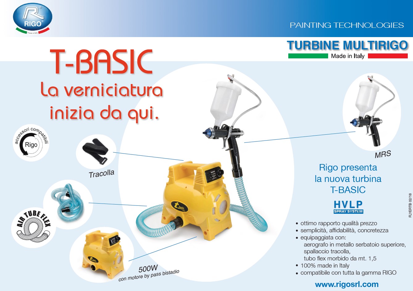 Semplice, leggero, silenzioso. Il T-BASIC è il sistema HVLP entry-level della gamma Rigo, pensato per chi cerca una soluzione pratica e professionale per la verniciatura. Dotato di motore by-pass silenziato da 500W, è perfetto per lavori decorativi, finiture e piccoli interventi su pareti, mobili e superfici.