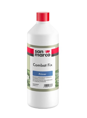 COMBAT FIX è un fissativo pronto all’uso pensato per consolidare le superfici murali e potenziare l’efficacia della pittura antimuffa. È ideale per ambienti interni ed esterni, su intonaci nuovi o vecchi, calcestruzzo, gesso e cartongesso. La sua azione igienizzante preserva le pareti dalla formazione di muffe, migliora l’adesione della pittura e uniforma l’assorbimento del supporto.