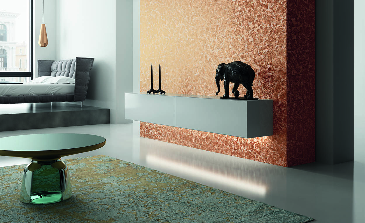 LUNANUOVA è un rivestimento decorativo trasparente arricchito da cristalli riflettenti multicolore, ideale per creare decori scenografici impreziositi da scintillanti riflessi colorati e continui giochi di luce. La sua texture leggermente ruvida e gradevole al tatto dona eleganza e personalità a ogni superficie, valorizzando ambienti sia classici che contemporanei.
