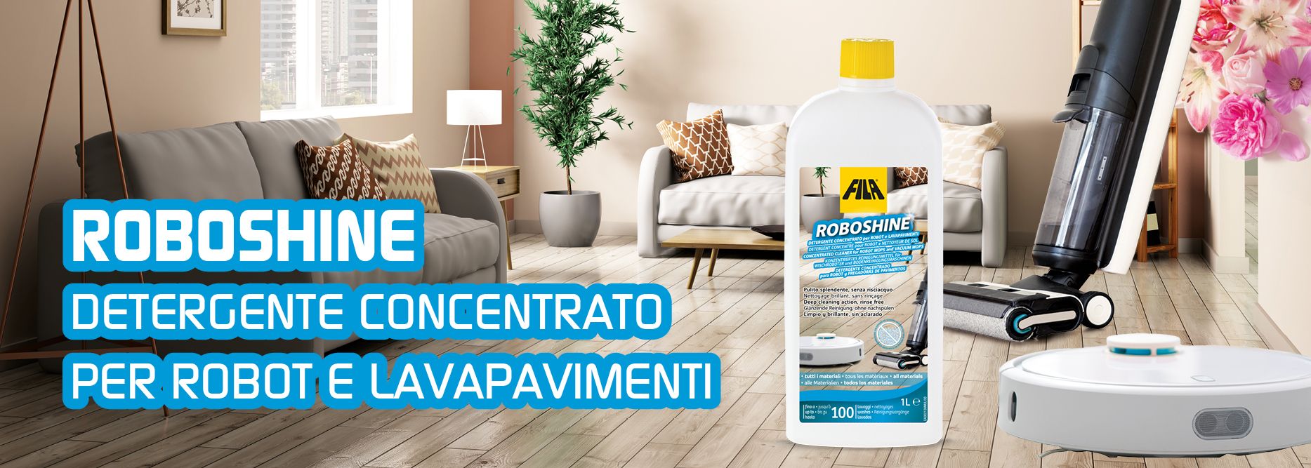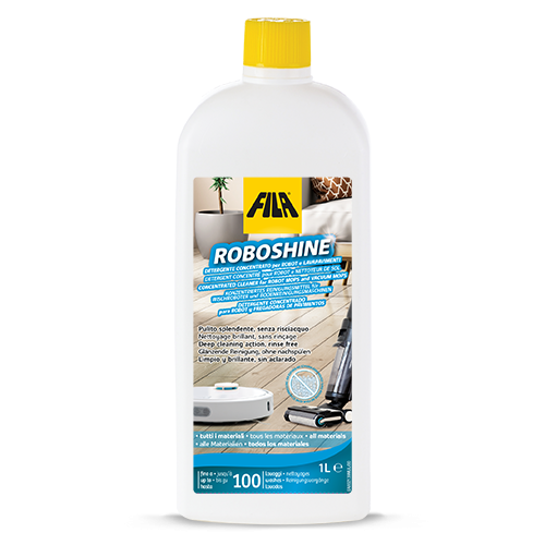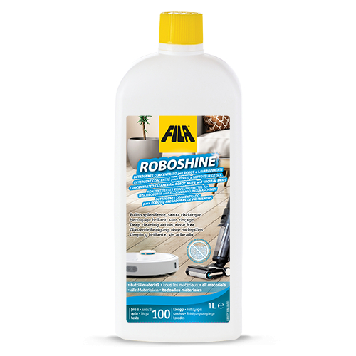 ROBOSHINE di FILA è il detergente ideale per tutti i tipi di robot lavapavimenti e lavasciuga. La sua formula non schiumogena garantisce una pulizia profonda su ogni superficie, senza lasciare aloni o residui. Perfetto per pavimenti cerati, gres, marmo, cotto e laminati.