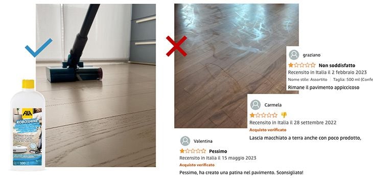 ⭐⭐⭐⭐⭐ Enrico Vitali – Treviso Finalmente un detergente che non rovina il robot. Pulizia perfetta e profumo gradevole. Lo consiglio!