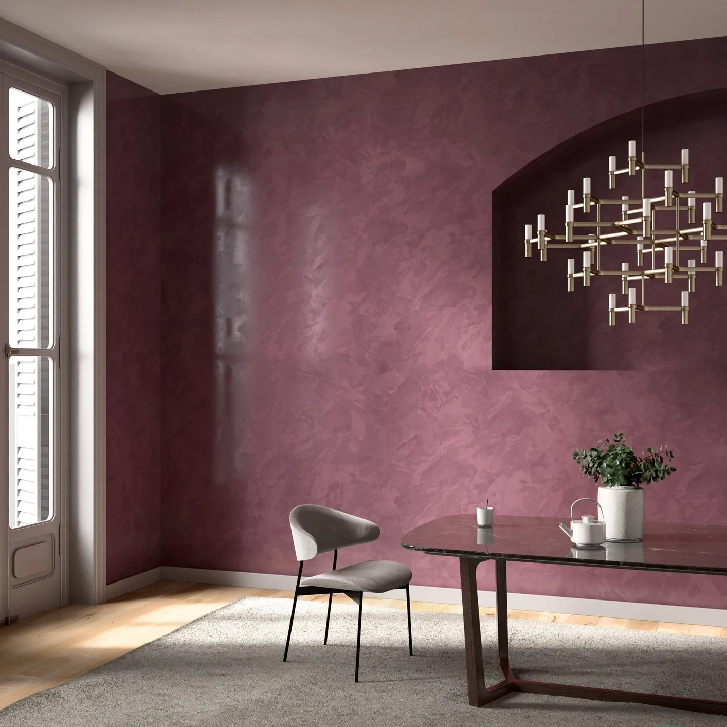 Stucco Veneziano SAN MARCO è un raffinato rivestimento murale per interni, il cui effetto decorativo richiama l’eleganza degli antichi palazzi aristocratici veneziani. Perfetto per creare atmosfere nobili e suggestive, dona alle superfici un effetto marmorizzato lucido e profondo, ideale per ambienti classici o moderni.