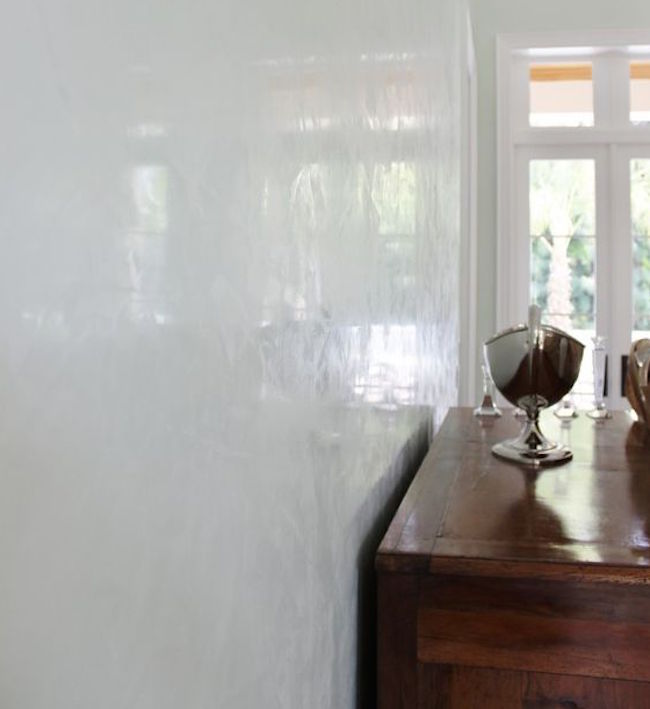Grazie alle sue sinuose sfumature lucide, può abbellire pareti piane o esaltare singoli elementi architettonici come cornici e colonne. La sua versatilità, unita all’estro del decoratore, consente infinite combinazioni e risultati sempre diversi. È compatibile con intonaci nuovi e vecchi, calcestruzzo, gesso, cartongesso e legno, compresi truciolare e compensato.