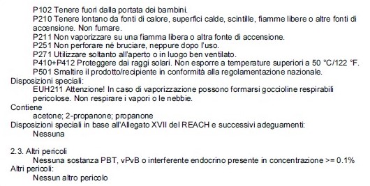Preparazione: agitare energicamente la bomboletta per almeno un minuto dopo aver sentito il rumore delle sfere interne.