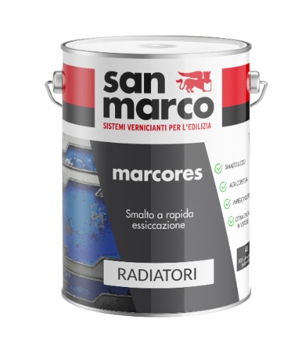 MARCORES RADIATORI è lo smalto sintetico di alta qualità progettato specificamente per la verniciatura e il restauro di radiatori, termosifoni, tubazioni di riscaldamento e scaldasalviette. La sua formula speciale è studiata per resistere alle alte temperature senza alterarsi, garantendo una finitura brillante che rimane inalterata nel tempo.