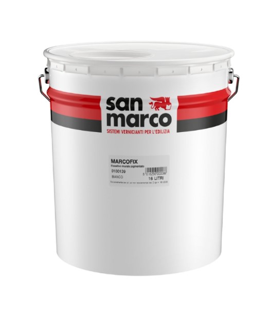 Marcofix è un fondo fissativo pigmentato a base di resine acriliche in dispersione acquosa, ideale per la preparazione di superfici murali esterne ed interne. Grazie al suo elevato potere riempitivo e uniformante, permette di livellare visivamente le irregolarità del supporto e di regolare l'assorbimento della parete, garantendo un risparmio di pittura nelle fasi successive. La sua formula speciale assicura un ottimo ancoraggio per rivestimenti a spessore, pitture lavabili e finiture minerali, rendendo il supporto omogeneo anche in presenza di diverse zone di stuccatura.